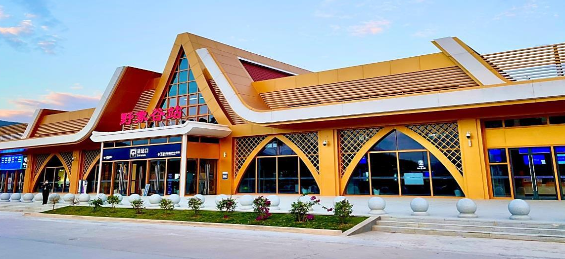 7.野象谷站位于云南省西双版纳傣族自治州景洪市勐养镇,因毗邻西双版纳国家级自然保护区勐养子保护区野象谷而得名。野象谷站为线侧下式站房,主体建筑面积2498平方米,地上1层,局部地下1层,最高聚集人数400人。旅客乘降站台2座、到发线3条,采用验检合一、进出站合一的进出站检票模式。设有重点旅客候车区。