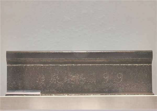 该博物馆展出的1899年汉阳铁厂生产的85磅钢轨。王泽华 摄