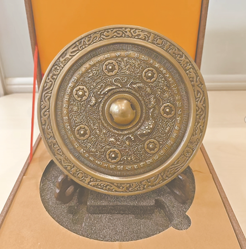 ——汉代“人民昌·中国强”铜镜,现收藏于陕西大唐西市博物馆,是该馆的镇馆之宝。该铜镜直径22.3厘米、厚0.7厘米,采用范铸法与浅浮雕、高浮雕工艺制作。镜背铸有47字铭文,包含“人民昌·中国强”吉语,字体融合隶书与悬针篆特征,为迄今唯一带有该铭文的汉代铜镜。