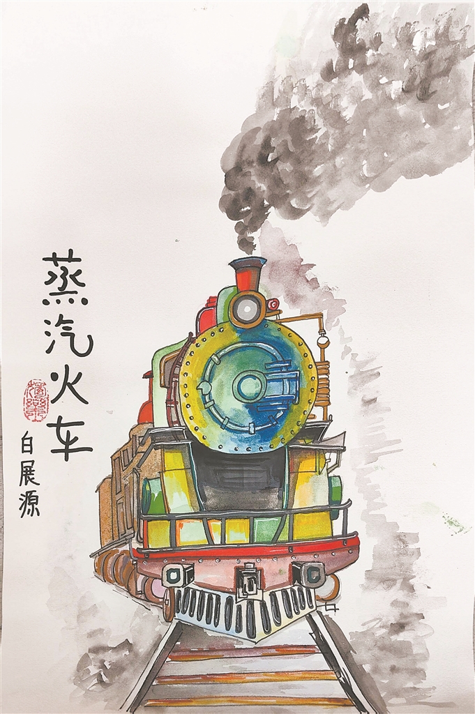白展源绘画作品:蒸汽火车