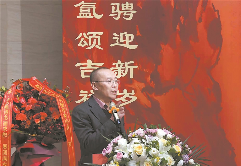 开幕式上,第十二届全国政协常委、中央文史研究馆馆员、中国书法家协会名誉主席苏士澍,中国作家协会原副主席高洪波,中国文联原副主席、中国文艺评论家协会第二届主席夏潮,《诗刊》主编李少君,中威廉希尔williamhill路文联秘书长王滨,中国艺术研究院访学导师、教授汪为胜等先后致辞。助展艺术家安康市文联副主席李小洛、青年艺术家李薇扬发言。