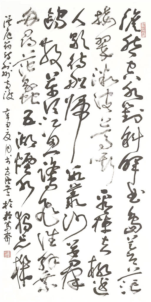 翻开他为此次画展精心准备的作品集,像翻过他的人生书页,诗中的岁月犹在,字中的心迹犹在,师友相交的温暖犹在。笔墨纵横游走,像一条生命的河流,流经不同的时空,带着岁月的风景,汇聚成波澜壮阔的江河,向着大海的方向奔腾而去。