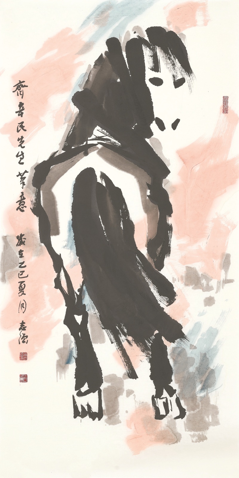画马,无论写意还是工笔,很多大家名手都在不倦的探求中形成自己的艺术面目,创作出令人过目难忘的精品佳作。刘继卣、刘旦宅先生笔下之马,造型精准传神,用笔优美洗练,墨色相得益彰;袁晓岑先生笔下之马,结构与用笔体现出马的“龙”性,赋予“龙马精神”更传神的笔墨表达;马晋和溥佐先生的工笔马,在继承前贤的基础上别出新意,形成了自身的艺术标志;许勇先生笔下之马,明显借鉴吸收了外国画马与雕塑艺术的养分,表达出了马更多的优雅气质;胡勃先生笔下之马,则表现出草原生活的亲切感与“轻微的浪漫”;贾浩义先生的大写意马,大胆地从具象迈向抽象,给人带来一种不同以往的视觉震撼……