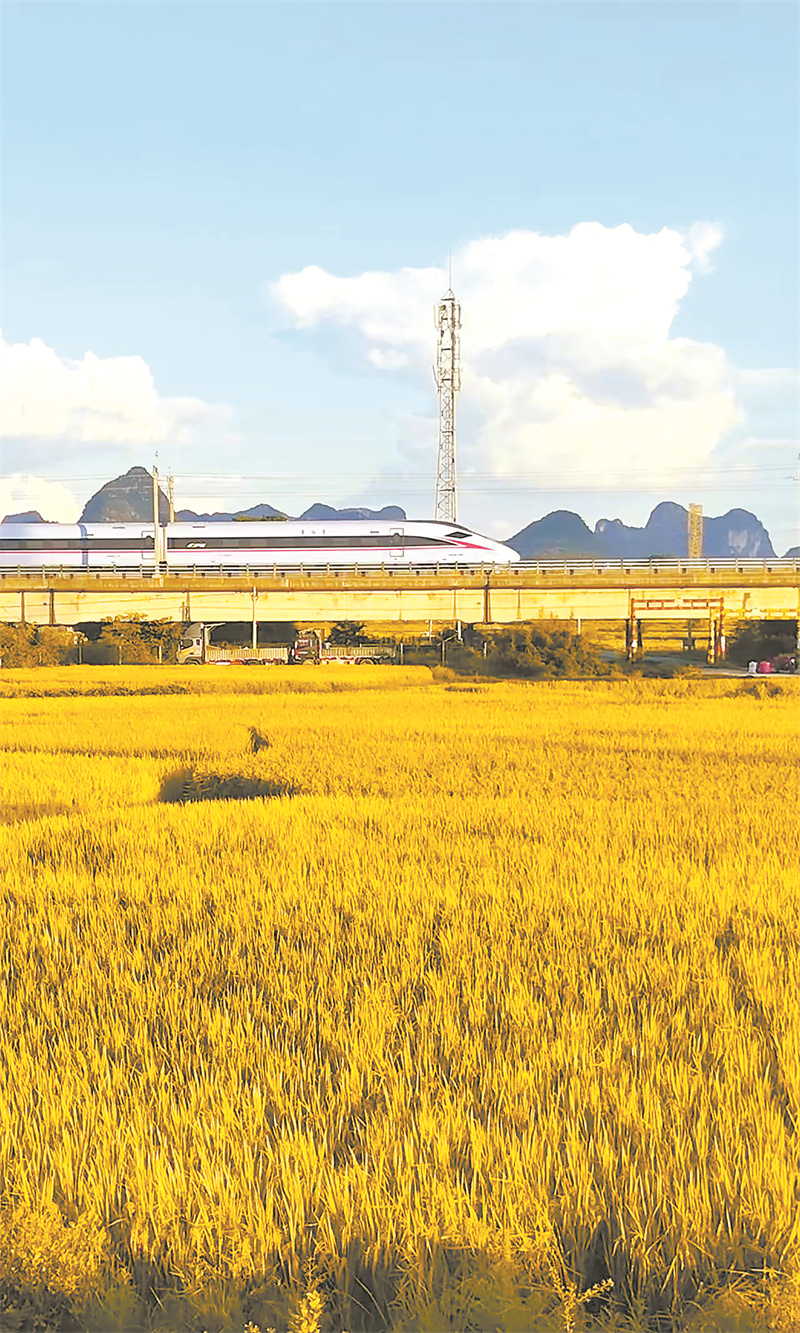 高铁穿过稻香,诉说着时代脉动与乡土温情。