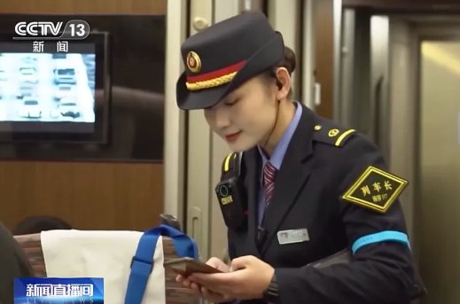 央视新闻微信:深夜高铁上,乘务员为何多了一枚“臂章”?