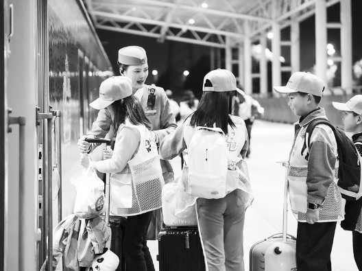 4月1日,全国多地的中小学生开始放春假,连着清明假期共6天。在成都安靖站,460余名学生游客于3月31日21时20分搭乘“熊猫专列·什邡号”春假主题研学列车,启程前往西北特色城市,开始为期6天的“塞上奇遇记”旅程。图为学生搭乘春假主题研学列车。韩旭刚/图 本报记者 何亮/文