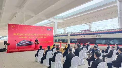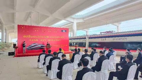 10月16日11时,中老铁路“澜沧号”动车组交付仪式在刚刚建成的中老铁路万象站举行(摄影/樊校)