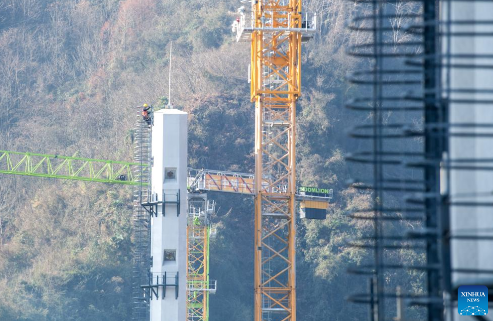 新华社外文通电:Renhe grand bridge along Xi'an-Chongqing high-speed railway in SW China under construction-Xinhua