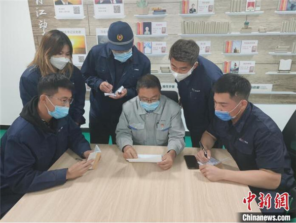 冷宏军和检修整备团队研究检修方案。 李畅 摄