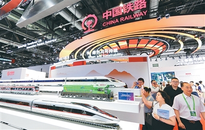 中国国际现代化铁路技术装备展览会集中展示世界各国先进铁路技术和装备。图为观众在展览会上参观。新华社记者 邢广利摄
