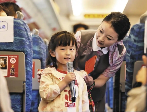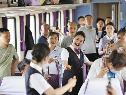 今年以来,青藏集团公司依托铁路沿线特色资源,开行多趟主题旅游列车。其中,“大美青海·幸福西藏”专列已开行8趟,服务游客2500余人次。此外,“六一”红领巾专列、“研学专列”等特色列车也深受群众欢迎,通过唱红歌、非遗体验等活动,让旅客在旅途中接受文化熏陶。