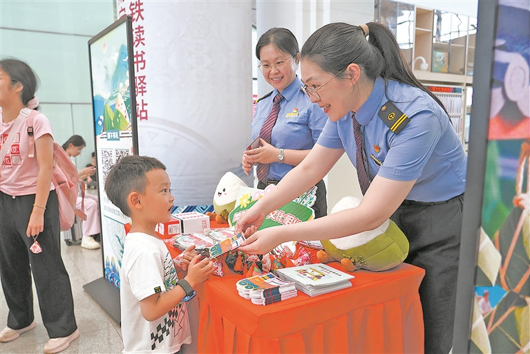 在南宁东站,旅客打卡铁路风景拍照区。在柳州站,气球被扎成花朵和粽子造型,引来旅客驻足拍照。在桂林北站、东安东站、全州南站的知识问答现场,工作人员围绕端午节及铁路安全、乘车常识等内容设置问题,旅客回答正确就能获得一份精美礼品。