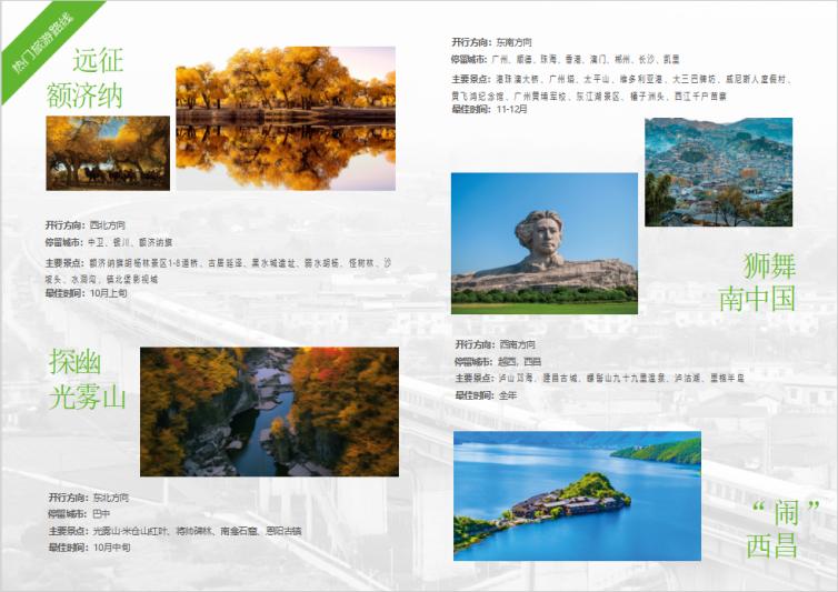 熊猫旅游列车中韩山海情”跨国旅游以及“少年黄河行”“疆湖万里行”“北国秋色赋”“远征额济纳”“狮舞南中国”“探幽光雾山”等特色主题旅游产品,丰富的旅游产品和优质的旅行服务收获了广大游客的好评。
